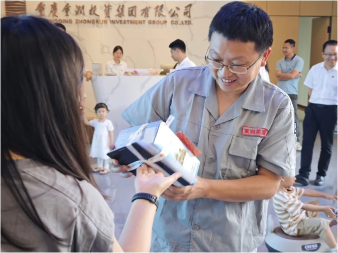 活动当天,重润科技园综合楼智慧展厅化身为充满欢乐的海洋,一场温馨的小型送礼祝福仪式在此隆重举行。部分孩子在家长的陪同下兴高采烈地来到现场,他们眼中闪烁着期待的光芒,满心欢喜地挑选着属于自己的节日礼物。现场氛围温馨而热烈,孩子们的笑声此起彼伏。对于未能到场的小宝贝,公司也贴心地安排员工代为领取礼物,确保每一个孩子都能在第一时间收到这份来自企业的关爱,不让任何一个孩子错过节日的惊喜。